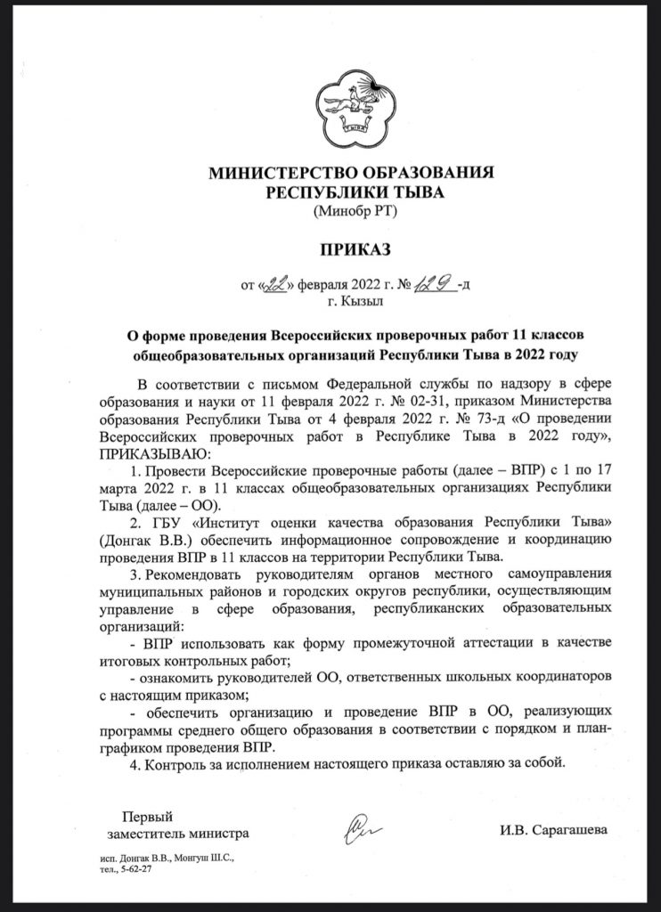 ВПР 2022 Сводный-анализ-ВПР-за-3года-Кызыл-ЧырааСкачать от 11.02.2022г №02-31 ВПР о направлении информацииСкачать О форме проведения ВПР 11 классов общеобразовательных организаций РТ в 2022 г. от 22.02.2022 № 129-дСкачать График-проведения-ВПР-в-2022г-осеньСкачать План-график-проведения-ВПР.Скачать Приказ-о-проведении-ВПР-в-2022-2023-у.г-осеньСкачать Приказ-о-проведении-ВПР-в-2022-2023-у.г-осень.Скачать
